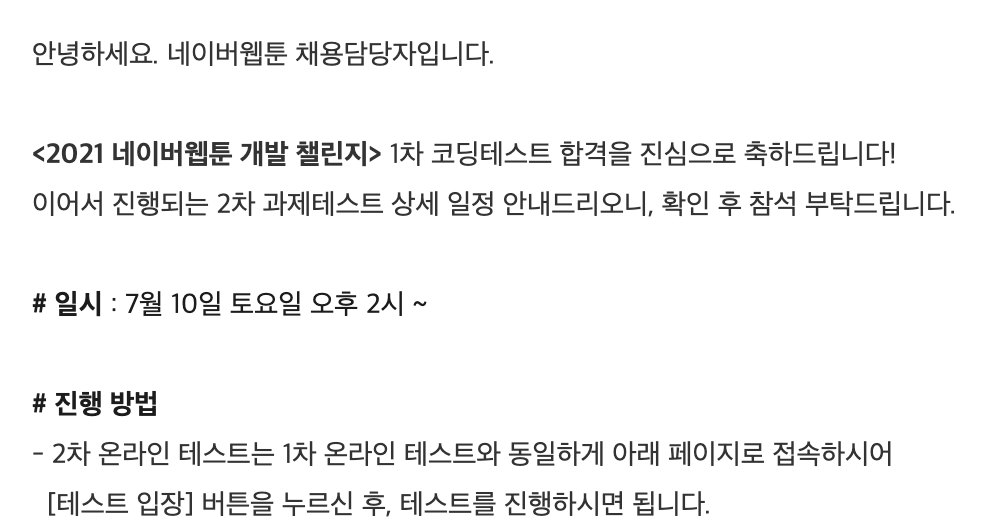 | [네이버 부스트캠프] 웹·모바일 2차 코딩테스트 최종 결과 (2) | 2021.07.13 |