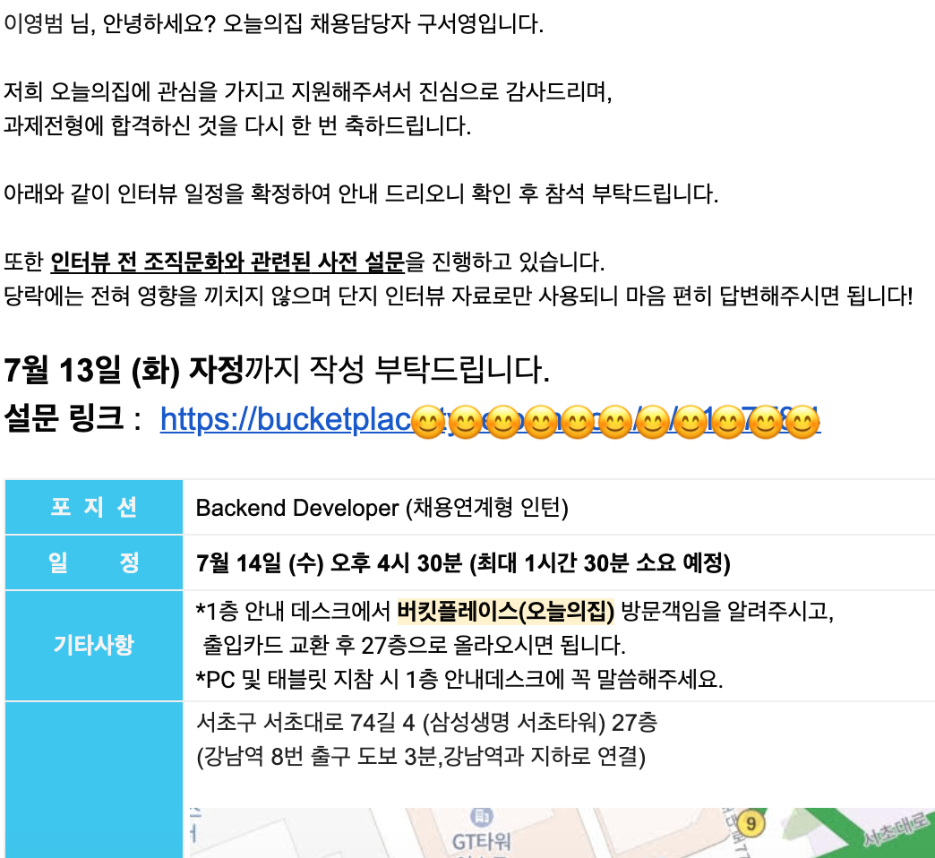 하지만 채용담당자님께서 지금 내가 처한 환경에 대해 이것저것 여쭤보셨는데
