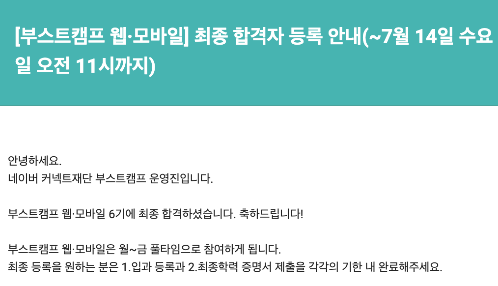 | [네이버 부스트캠프] 웹·모바일 6기 챌린지 후기 (0) | 2021.08.20 |